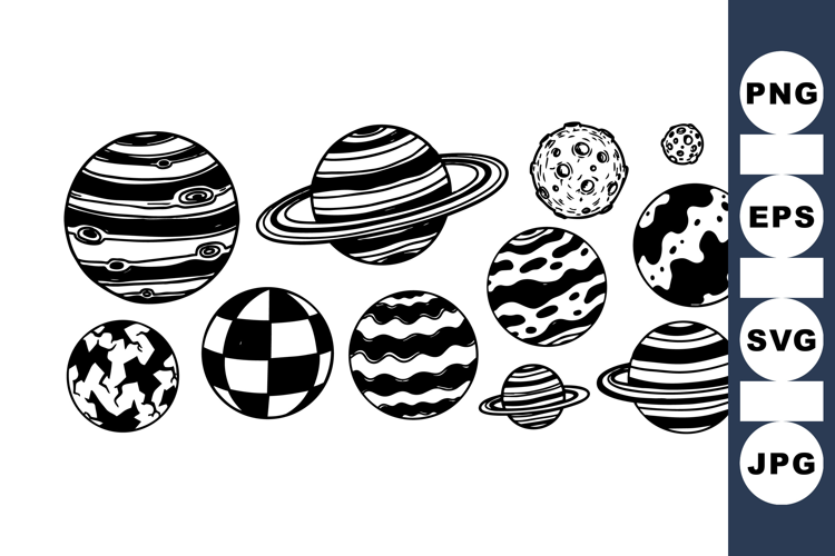 Hand Drawn Planets Outer Space Design Celestial Body Art Astronomy Clipart Set Cosmic Clipart Collection Planet Illustration Pack Space Themed Graphics Vintage Space Clipart Solar System Artwork Retro Planet Bundle