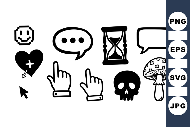 Hand Drawn Icons Gothic Style Graphics Black And White Icons Retro Skull Clipart Halloween Graphic Pack Minimalist Web Icons Mushroom Illustration Set Dark Theme Clipart Digital Cursor Designs Punk Icon Collection
