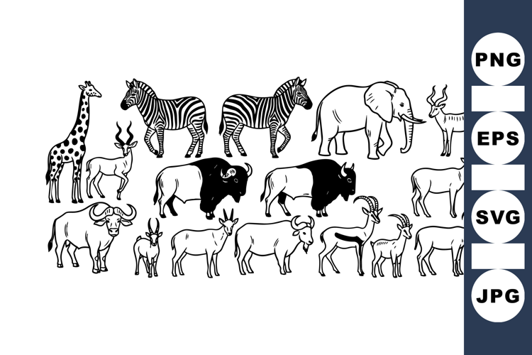 Black And White Clipart Hand Drawn Animals Safari Animals Clipart Animal Line Art Nature Clipart Set Wild Animal Illustrations Wildlife Clipart Bundle Animal Sketch Set Animal Drawing Pack Mammal Clipart Bundle
