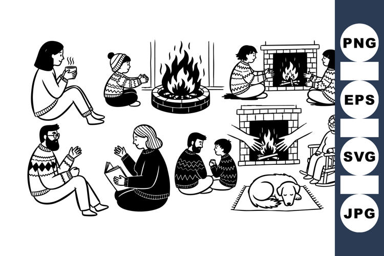 Cozy Home Illustrations Holiday Season Clipart Indoor Winter Activities Winter Fireplace Clipart Winter Reading Clipart Family Indoor Scenes Warm Winter Bundle Knitted Sweater Graphics Fireplace Cozy Set Relaxing Winter Designs