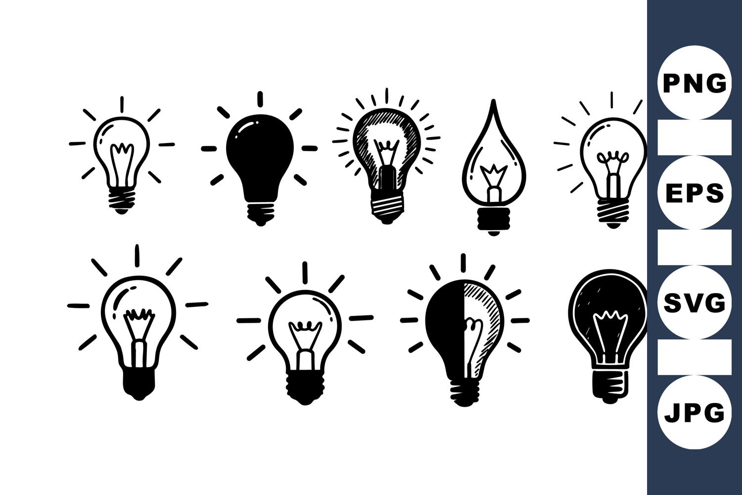 Hand Drawn Icon Line Art Collection Black And White Sketch Retro Light Bulb Technology Icon Pack Vintage Bulb Illustration Electricity Symbol Set Creative Idea Graphic Energy Concept Design Illustration Clipart Bundle