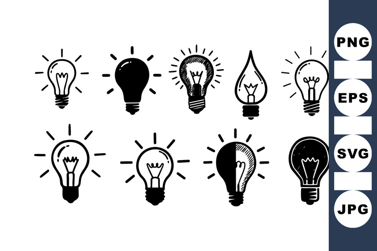 Hand Drawn Vintage Light Bulb Icon Set example image 1
