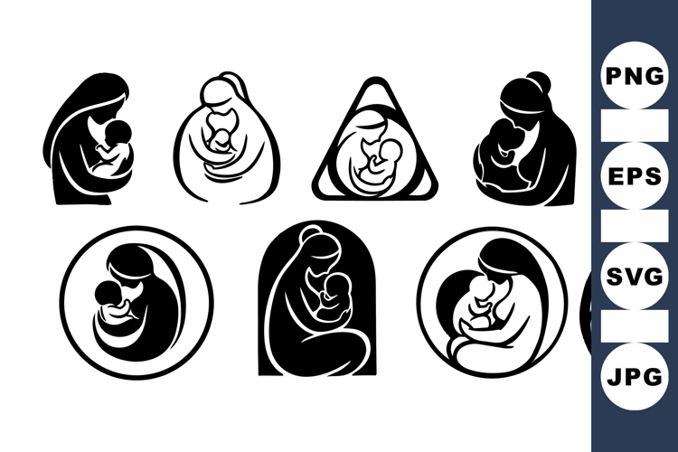Printable Baby Art Vector Clipart Bundle Minimal Line Art Black White Silhouettes Mother Silhouette Clipart Baby Holding Mom Motherhood Logo Set Newborn Nursery Graphics Parenting Icon Pack Mother Embrace Illustration