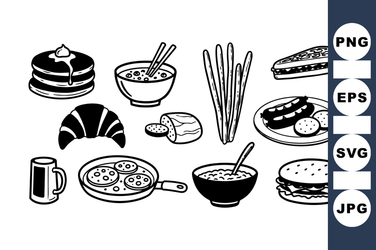 Hand Drawn Food Black And White Doodles Food Clipart Set Hand Sketch Food Vintage Food Graphics Retro Food Illustrations Vintage Breakfast Clipart Breakfast Meal Bundle Cafe Food Bundle Breakfast Illustration Pack