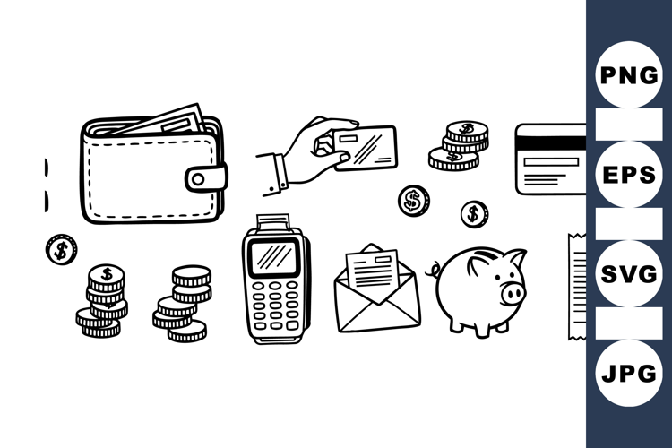 Vector Icon Set Credit Card Graphic Digital Payment Icons Piggy Bank Illustration Hand Drawn Finance Money Clipart Pack Financial Transaction Design Wallet Svg Collection Receipt Clipart Bundle Coins And Cash Vectors
