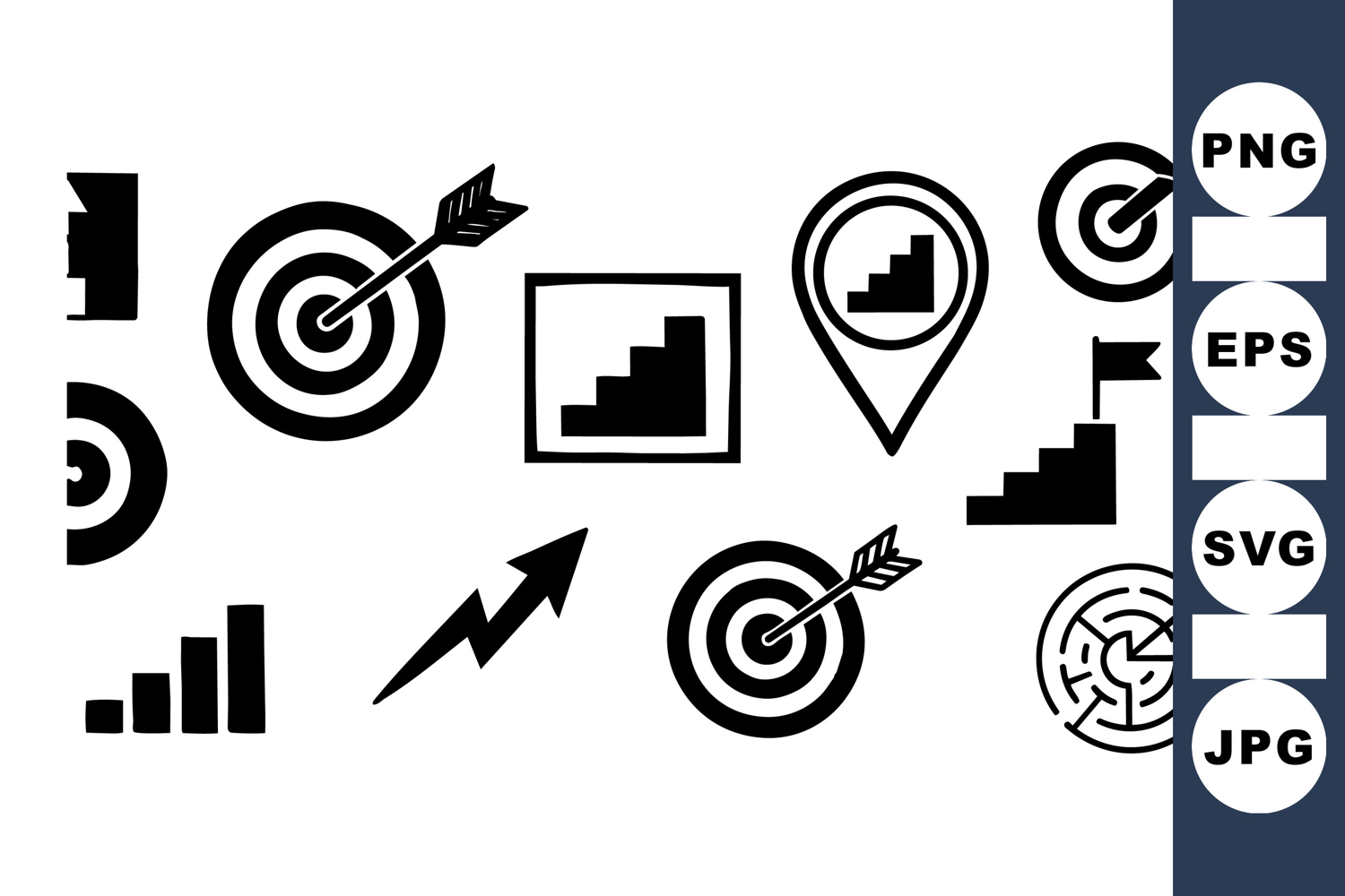 Business Growth Icons Business Goal Icons Strategy Icon Set Target Arrow Symbols Progress Steps Icons Success Navigation Marks Goal Planning Graphics Objective Clipart Set Marketing Target Icons Achievement Icons Pack