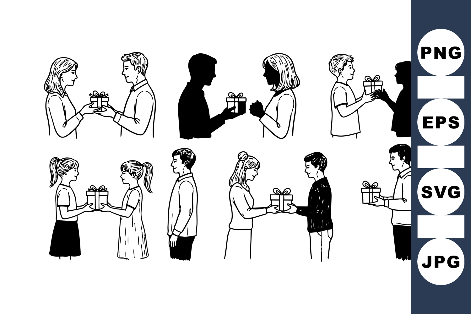 Hand Drawn Gift Giving Silhouette Clipart example image 1