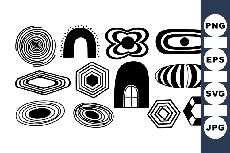 Black And White Clipart Abstract Shape Bundle Minimalist Design Set Geometric Vector Clipart Modern Art Collection Hexagon Shape Pack Digital Design Graphics Symmetrical Pattern Bundle Circle Shapes Collection Bold Lines Clipart