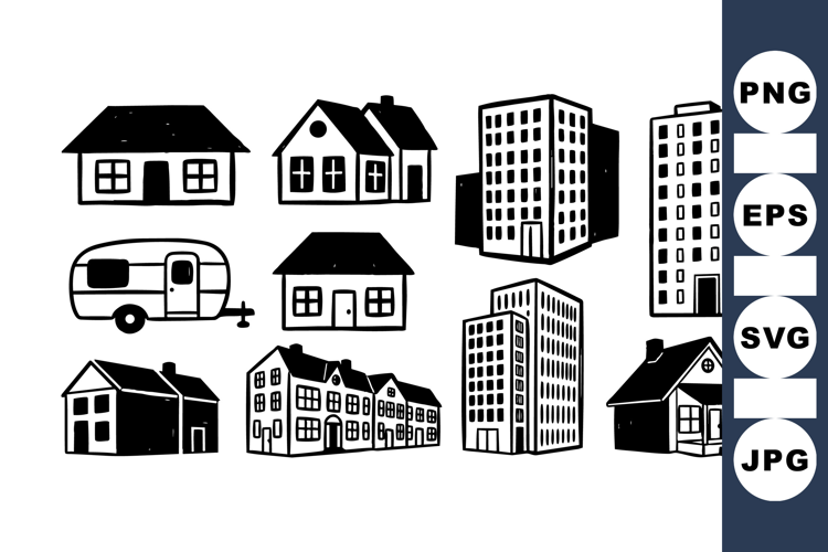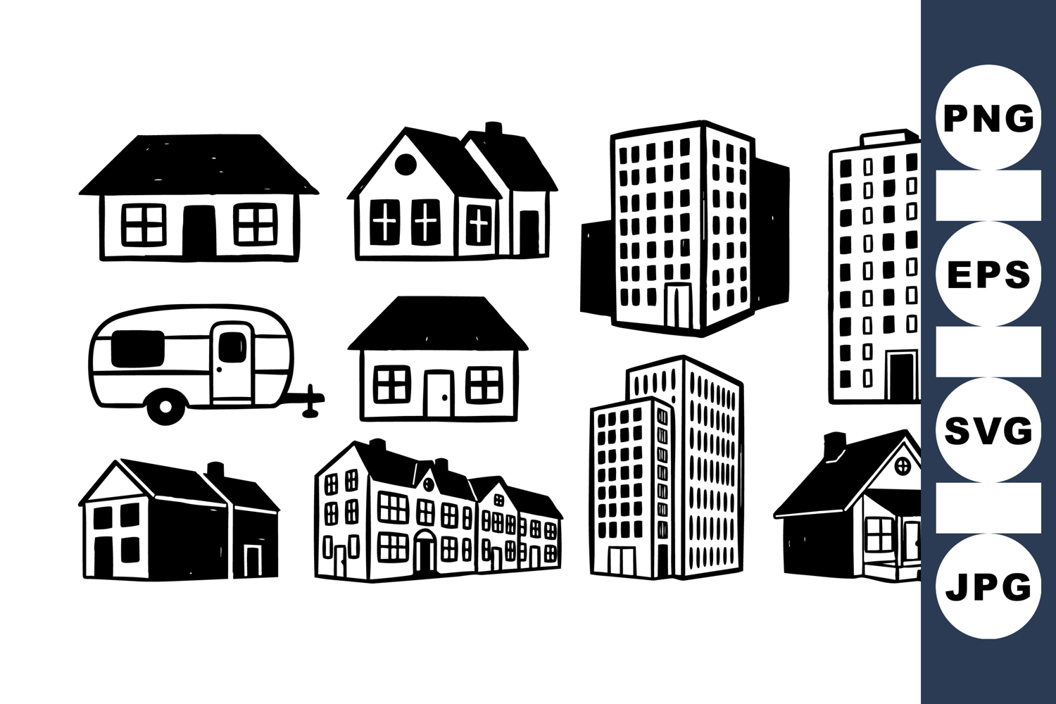 Black And White Clipart Real Estate Clipart City Skyline Graphics Architectural Sketch Bundle Hand Drawn Buildings Urban Clipart Set Residential House Illustrations Modern Apartment Designs Printable Urban Graphics Line Art Building Set