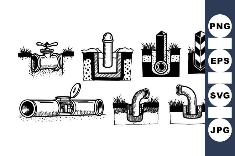 Black And White Sketch Industrial Pipe Set Industrial Machinery Clipart Vintage Pipe Clipart Mechanical Illustration Bundle Plumbing Pipe Graphics Hand Drawn Pipe Art Technical Pipe Drawing Metal Pipe Clipart Retro Engineering Set
