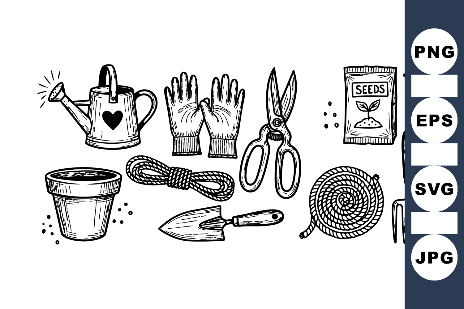 Hand Drawn Clipart Black And White Clipart Rustic Garden Clipart Botanical Clipart Pack Printable Garden Art Summer Garden Graphics Garden Tool Bundle Gardening Craft Set Spring Gardening Design Vintage Garden Tools