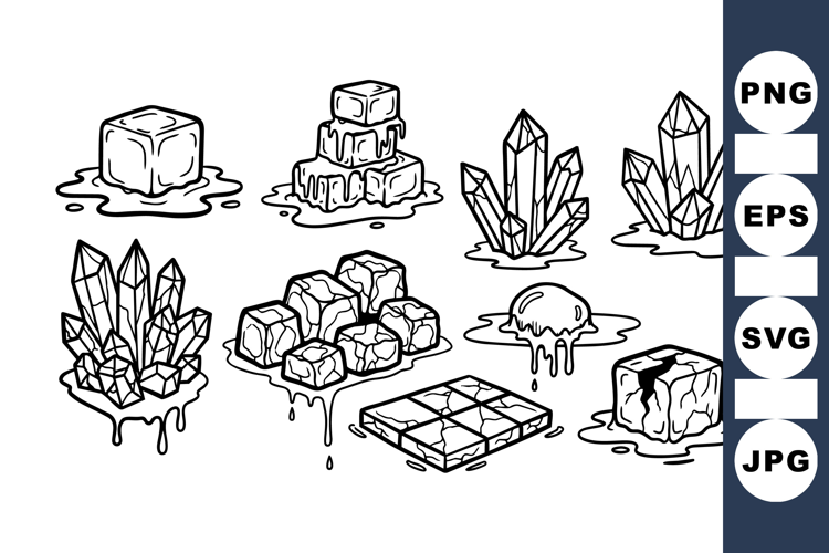 Hand Drawn Crystals Melting Ice Clipart Crystal Cluster Clipart Gemstone Clipart Set Mineral Art Bundle Dripping Ice Cube Rock Illustration Bundle Quartz Gem Set Cartoon Gemstone Art Sparkling Crystal Pack