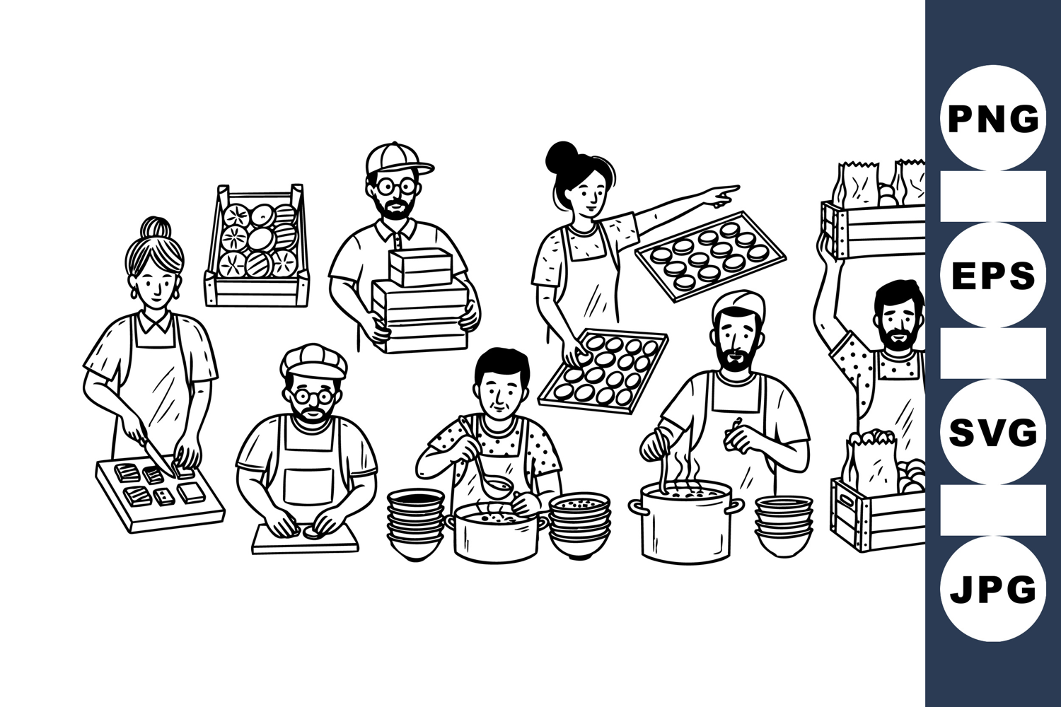 Similar Design Products to Hand Drawn Baking Chefs Line Art Clipart Set
