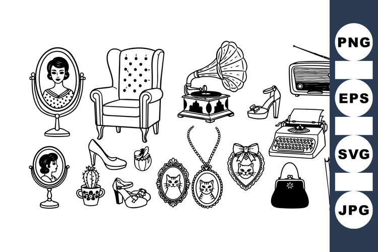 Vintage Retro Accessories Clipart For Crafting