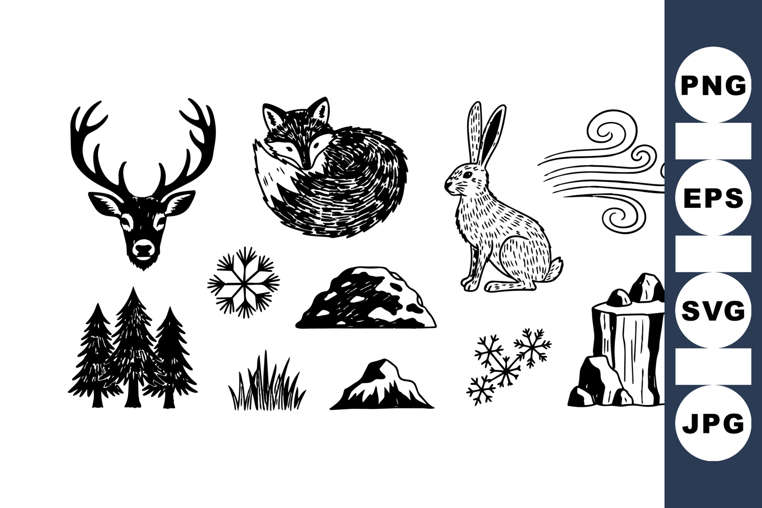 Hand Drawn Animals Woodland Animal Clipart Pine Tree Clipart Vintage Forest Clipart Animal Clipart Collection Animal Silhouette Pack Nature Craft Bundle Forest Nature Bundle Rustic Wildlife Set Mountain Range Design