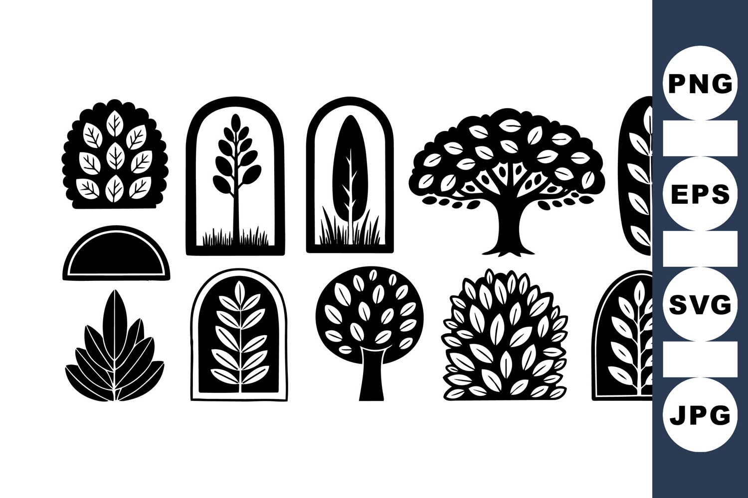 Minimalist Black Tree Silhouettes Clipart Set for Crafts