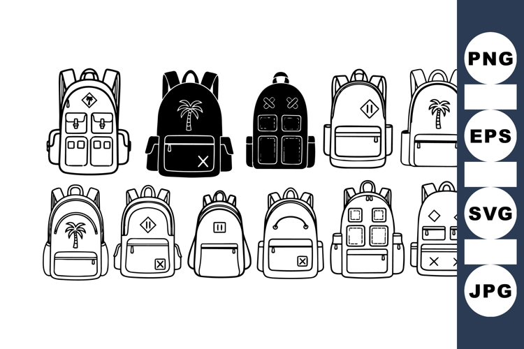 Minimalist Line Art Backpack Clipart Collection for Crafts