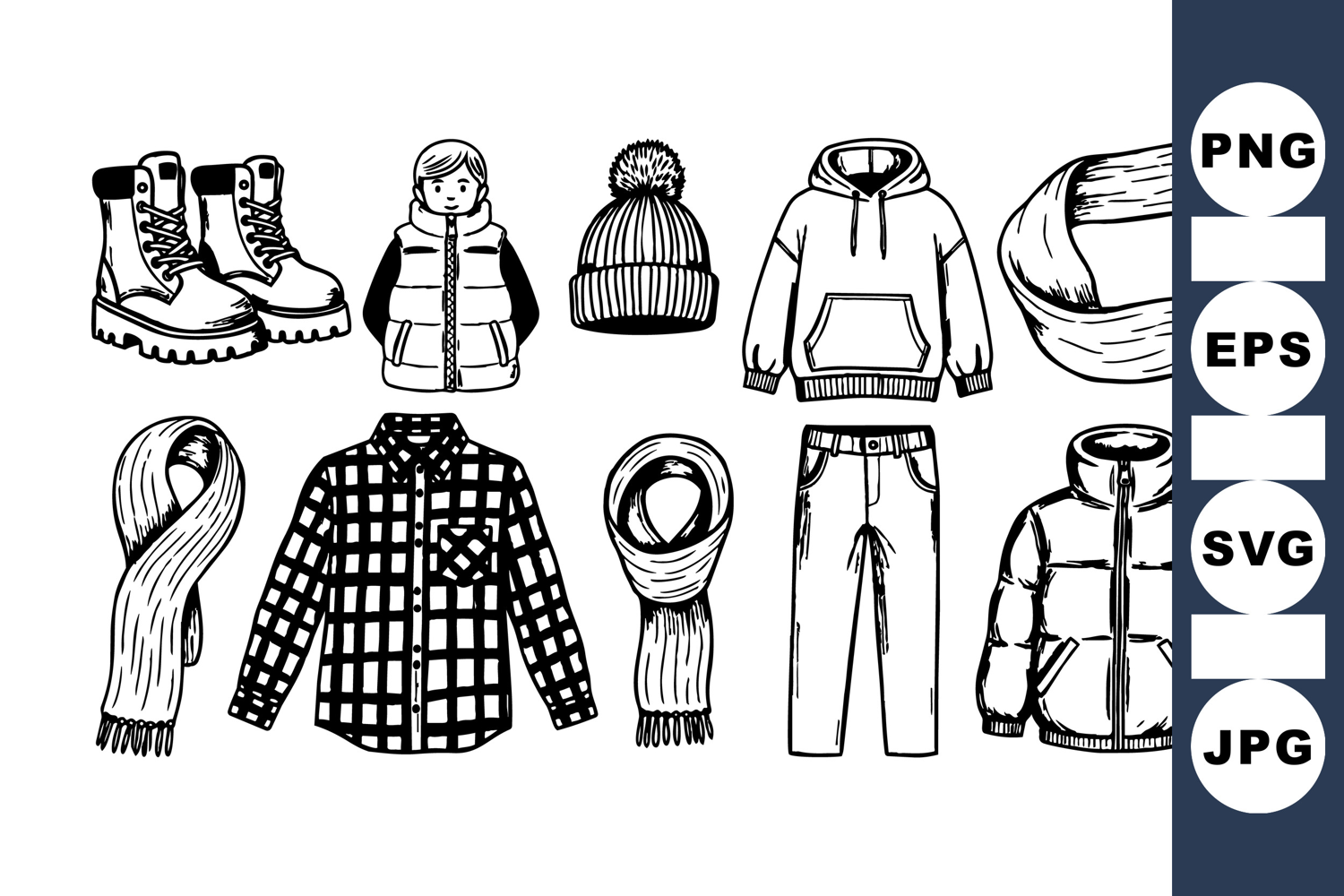 Hand Drawn Winter Clothing Clipart For Crafting