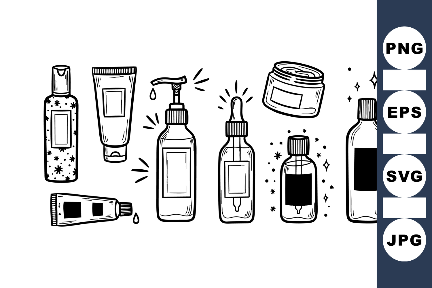 Hand Drawn Cosmetic Bottles Outline Clipart Set example image 1