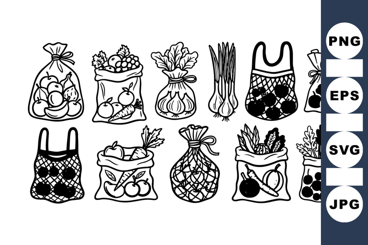 Hand Drawn Vintage Grocery Produce Bag Clipart Set