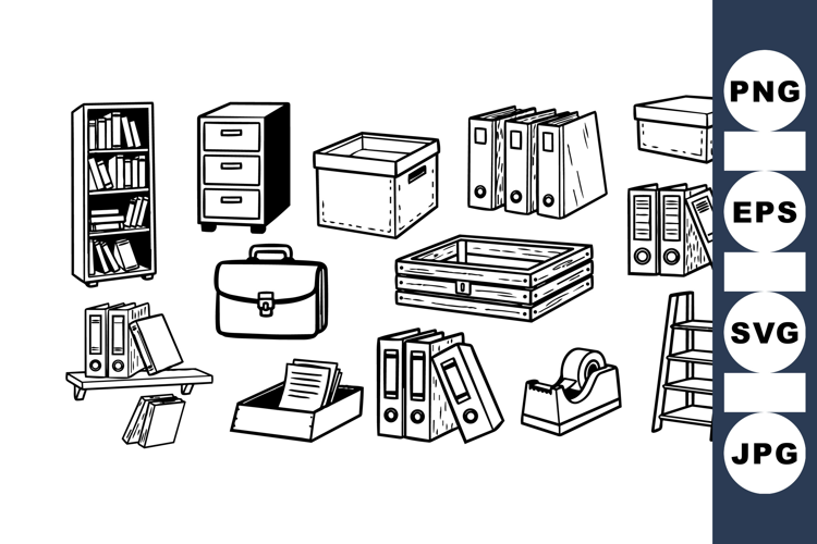 Office Supplies Clipart Office Stationery Hand Drawn Line Art Office Folder Illustration Archival Box Clipart Desk Organizer Graphic Filing Cabinet Drawing Workspace Organizer Pack Briefcase Art Stationery Supply Images