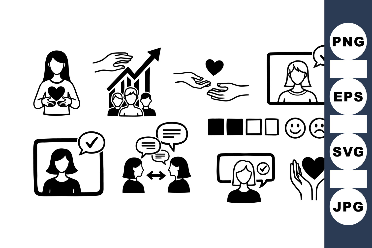 Work From Home Business Communication Symbols Team Collaboration Graphics Remote Work Icons Virtual Team Clipart Online Meeting Graphics Employee Evaluation Icons Digital Teamwork Customer Support Illustrations Video Conference Clipart