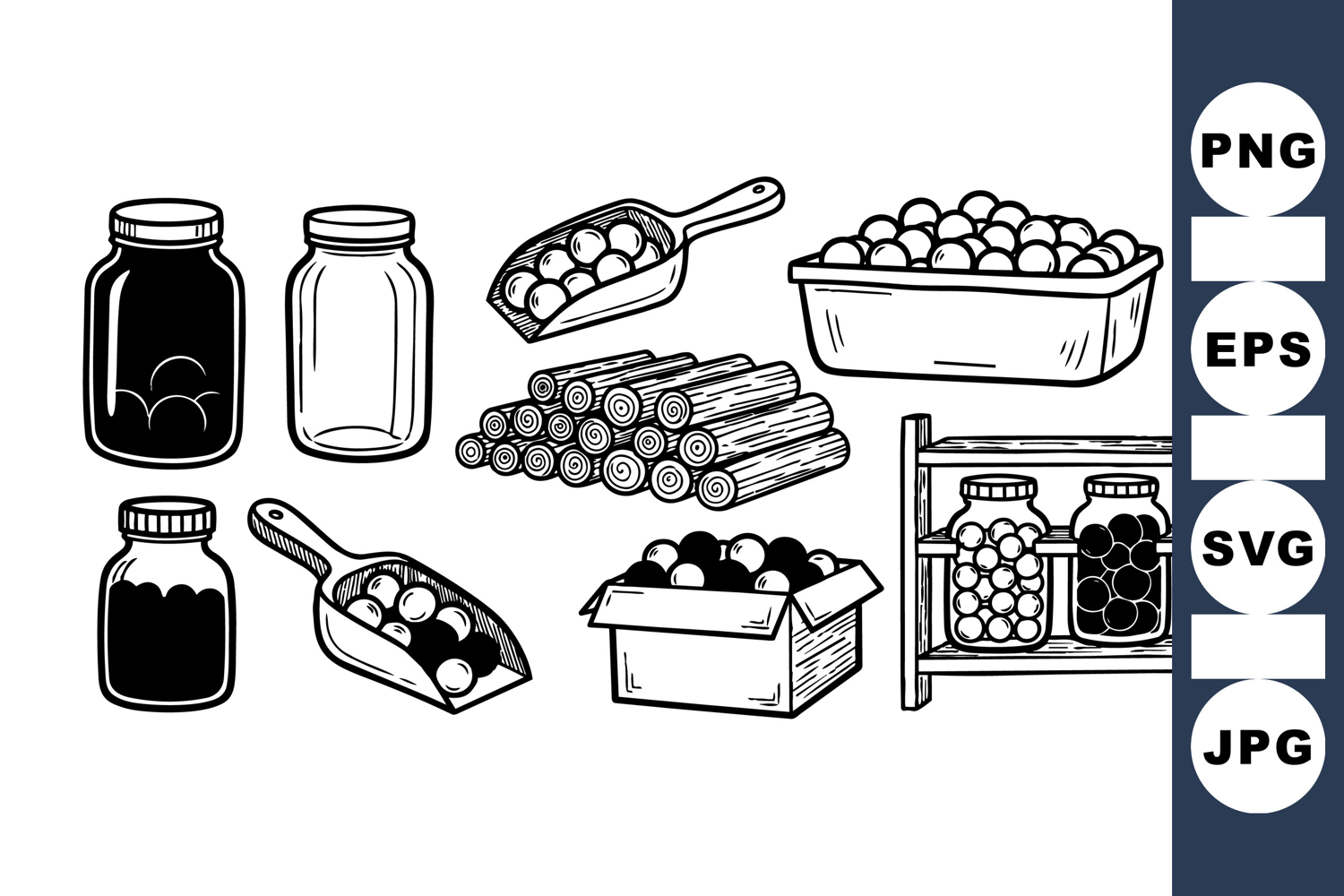 Vintage Jar Hand Drawn Jars Farmhouse Jar Clipart Black White Illustration Rustic Jam Clipart Homemade Preserve Kitchen Canning Art Fruit Jam Graphics Mason Jar Illustrations Berry Preserve Clipart