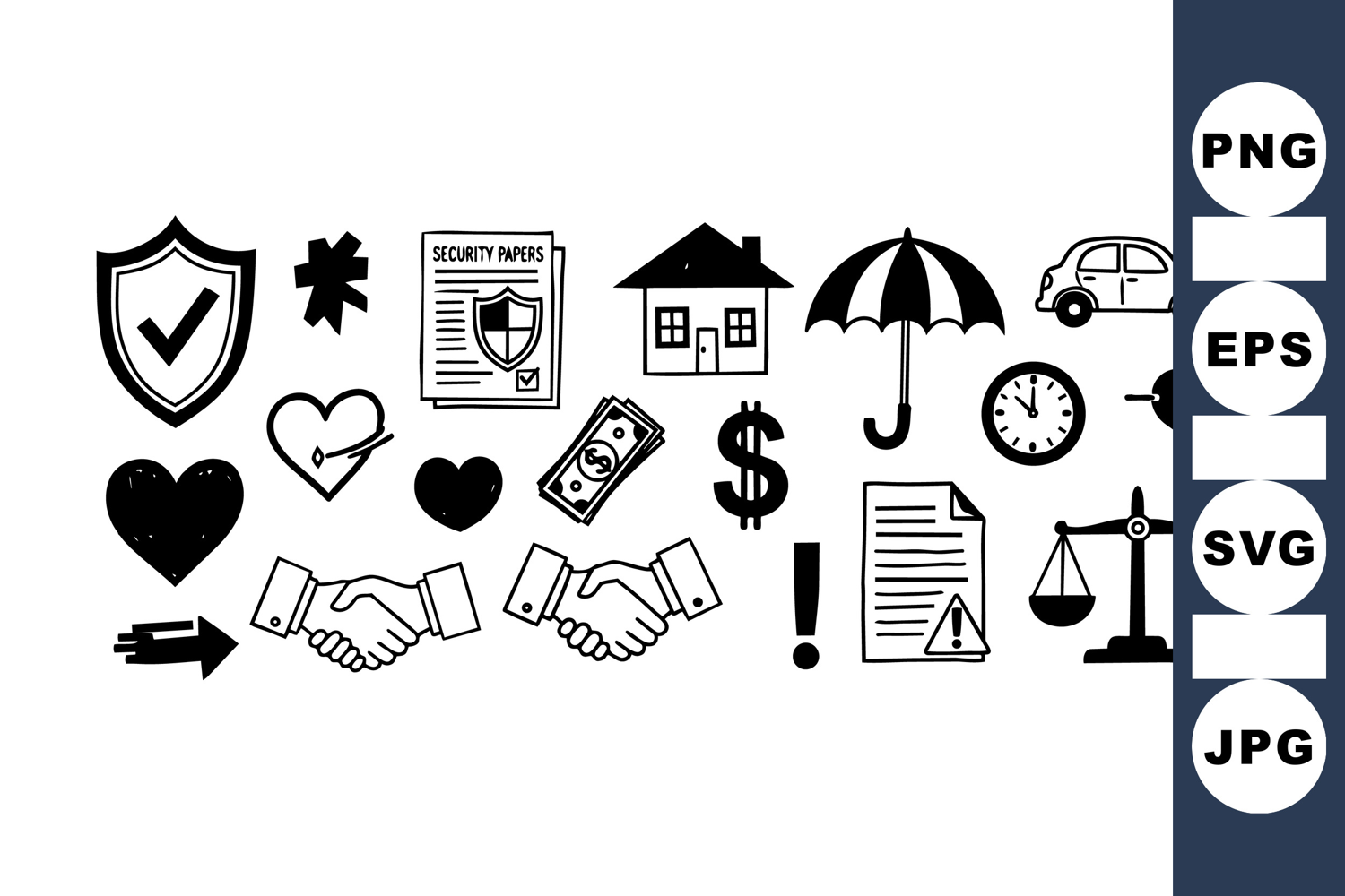 Business Icon Insurance Icon Contract Agreement Business Handshake Icon Risk Management Icons Insurance Policy Icons Legal Document Icons Hand Drawn Finance Financial Protection Icon Protection Umbrella Icon