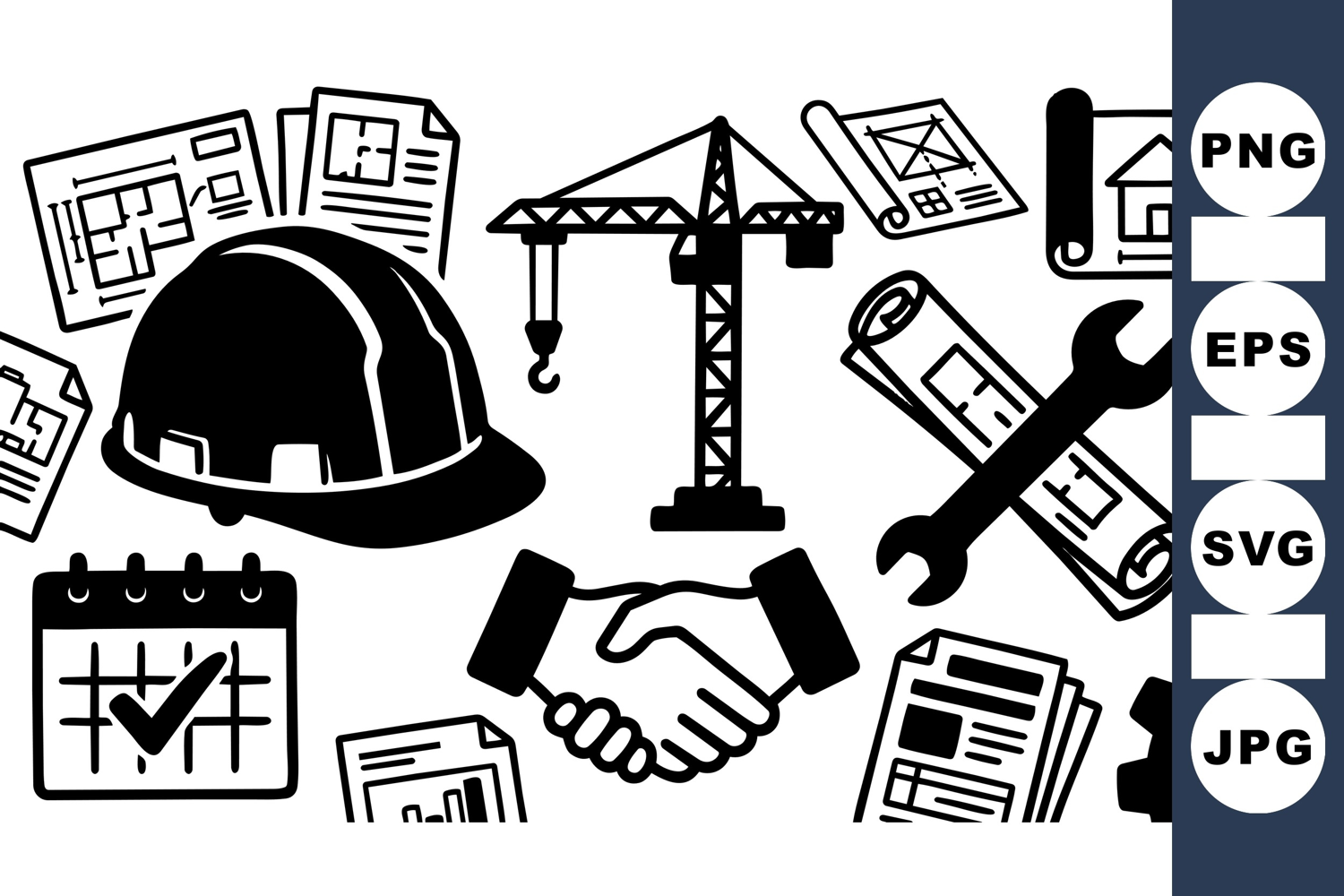 Construction Tools Icons Construction Helmet Vector Work Schedule Graphics Crane And Machinery Engineering Project Graphics Building Plan Illustrations Tool And Equipment Icons Blueprint Design Elements Contract And Agreement Gear Wrench Icons