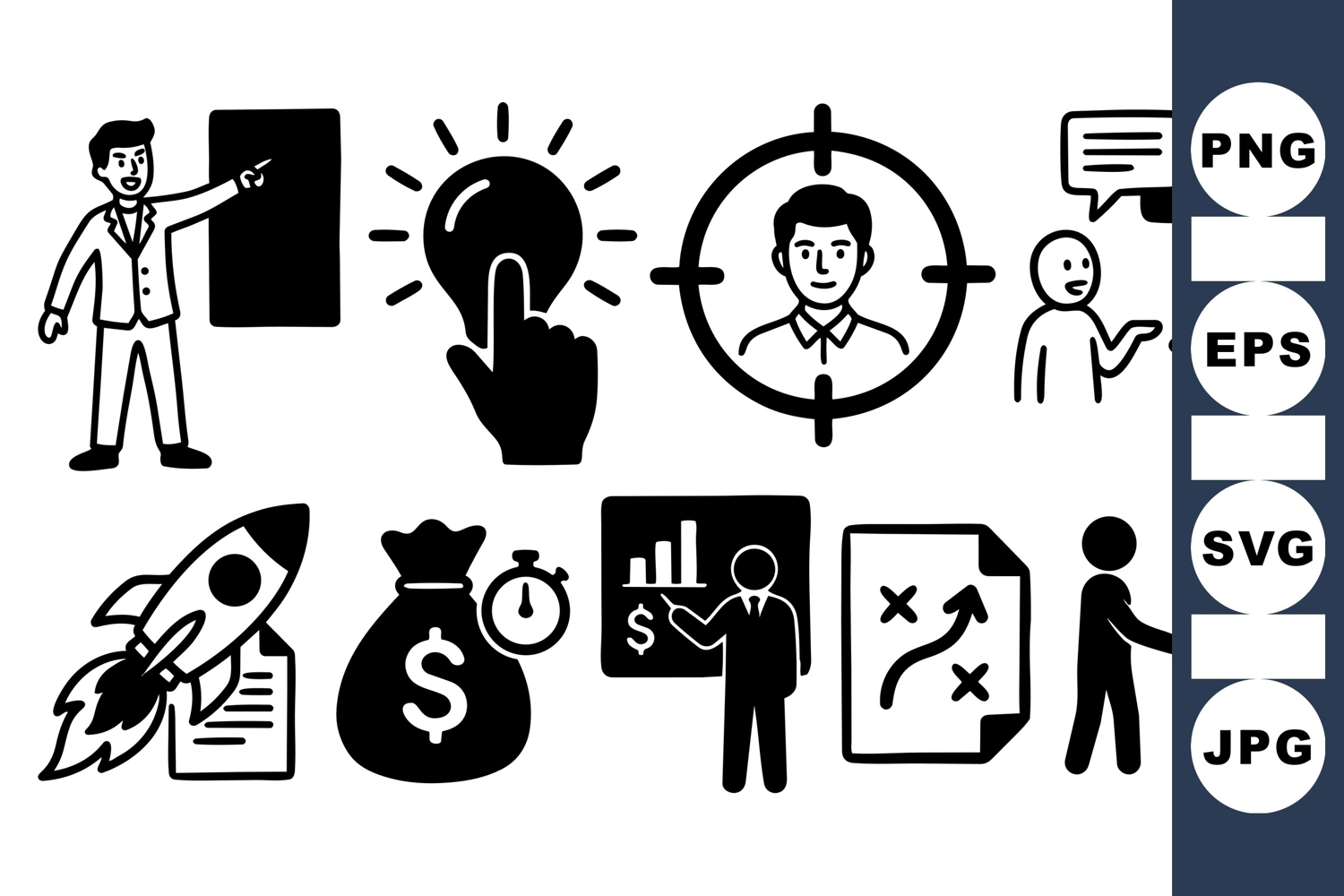 Strategy Planning Business Meeting Illustrations Business Idea Icons Startup Launch Icons Partnership Handshake Clipart Marketing Presentation Pack Financial Goal Graphics Success Growth Symbols Investment Timer Icons Teamwork Discussion