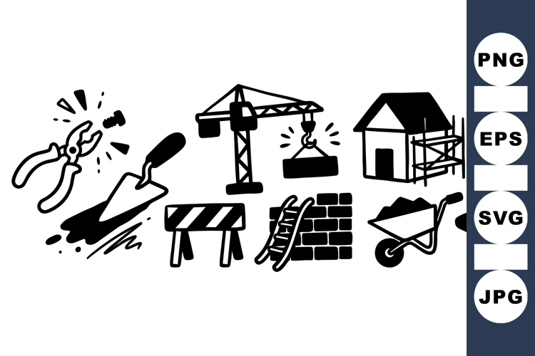 Hand Drawn Construction Tools Icon Pack for Crafts