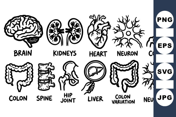 Human Anatomy Healthcare Graphic Black And White Vectors Scientific Illustration Pack Anatomy Vector Clipart Medical Organ Illustrations Line Art Organ Biology Educational Clipart Skeletal System Graphics Nervous System Clipart