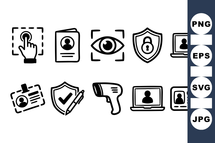 Identity Verification Security System Icons Digital Security Graphics Authentication Icon Pack Security Access Icons User Id Badge Login Screen Icons Secure Access Symbols Badge Id Clipart Access Control Vector