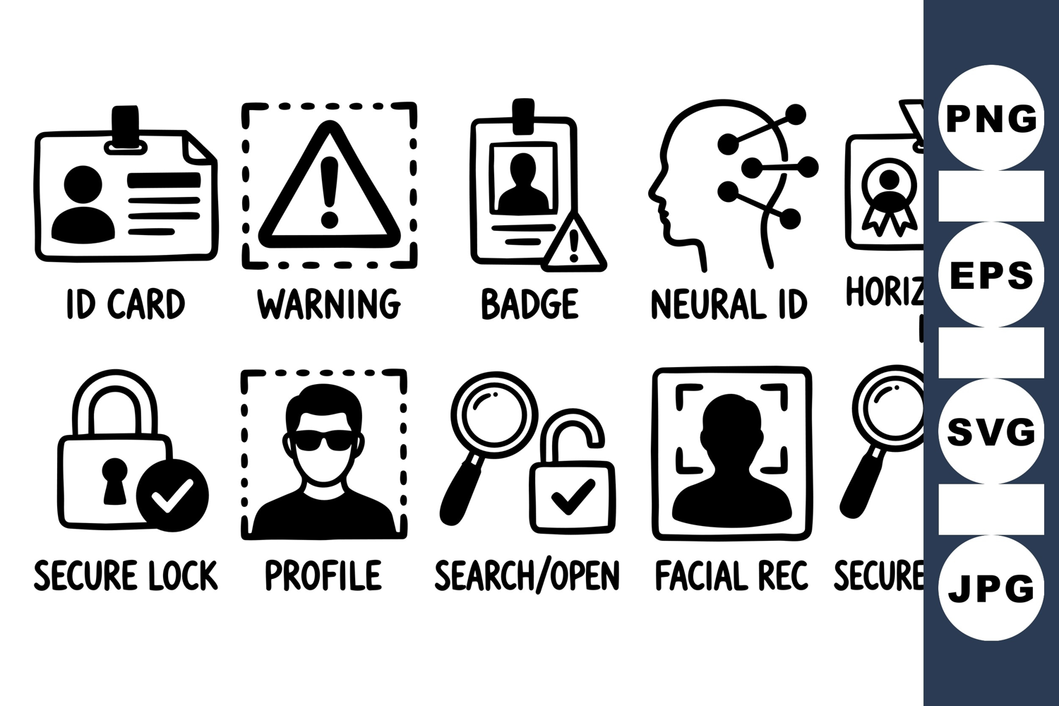 Security Icon Id Card Vector Secure Lock Icon Warning Alert Icon Profile Avatar Design Facial Recognition Vector Search Magnifier Vector Digital Id Badge Neural Id Graphic Horizontal Id Layout
