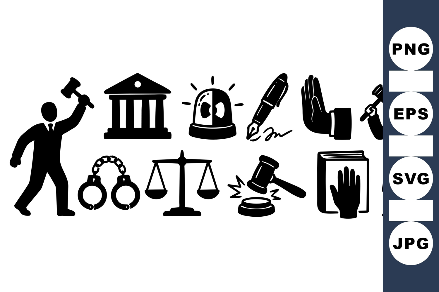 Law Enforcement Icons Court Case Illustrations Justice System Clipart Legal Icon Courtroom Svg Judge Hammer Graphic Lawyer Symbol Pack Legal Document Vector Law Scale Graphics Handcuffs Svg Collection
