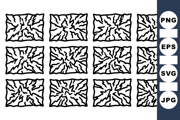 of twelve black and white abstract rectangular patterns with jagged, irregular lines and organic shapes arranged in neat rows for design usage.