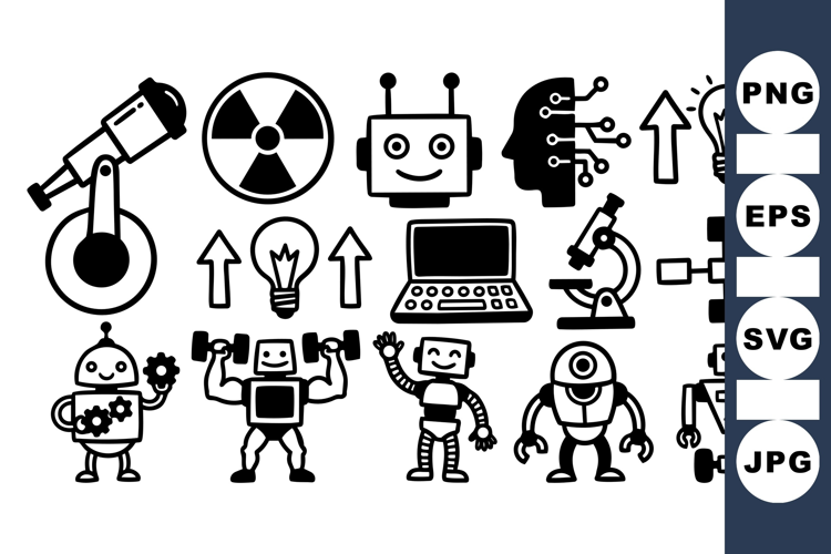 Robot Vector Technology Clipart Robotics Clipart Microscope Svg Digital Technology Ai Robot Collection Science Icon Pack Black White Robots Science Illustration Kit Engineering Svg Pack