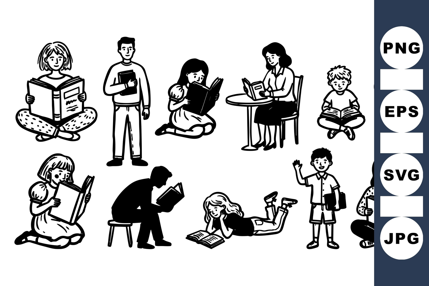 Similar Design Products to Black and White Reading People Silhouette Clipart