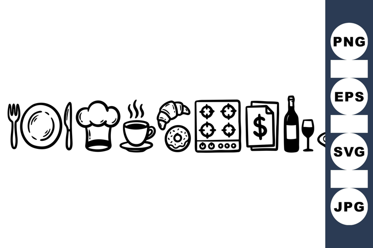 Food And Drink Hand Drawn Icons Restaurant Icon Kitchen Icon Chef Hat Clipart Breakfast Clipart Pack Cooking Vector Graphics Bakery Icon Collection Wine Glass Graphics Dessert Vector Icons