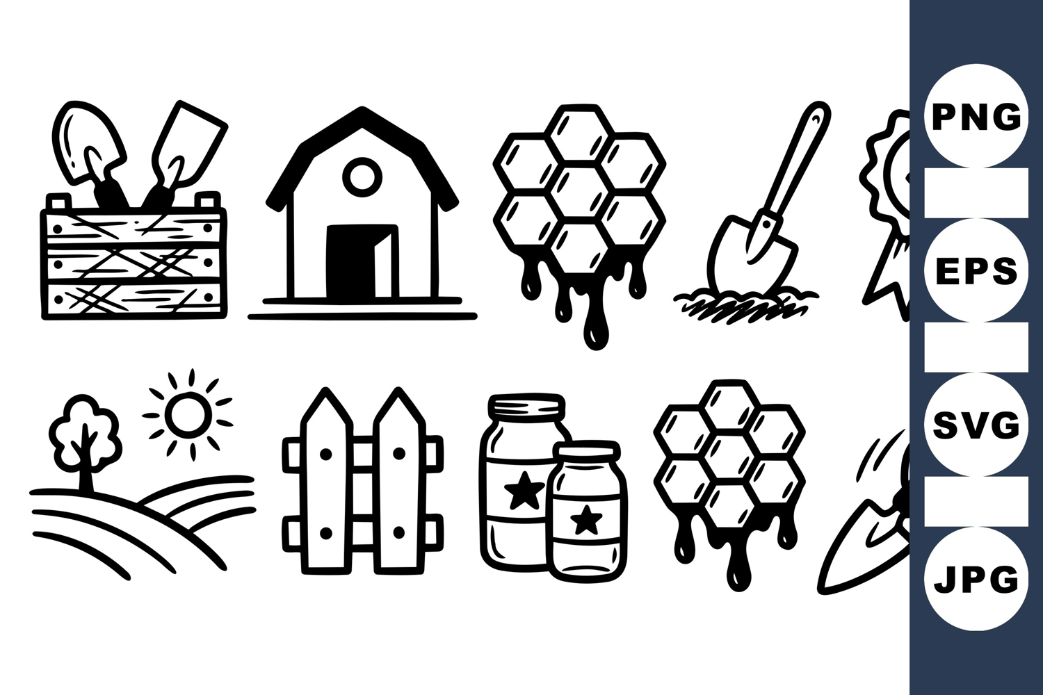 Gardening Svg Collection Black And White Icons Garden Illustration Rustic Garden Clipart Beekeeping Clipart Rustic Farmhouse Design Harvest Themed Farm Tools Graphics Honeycomb Vector Pack Hand Drawn Farming