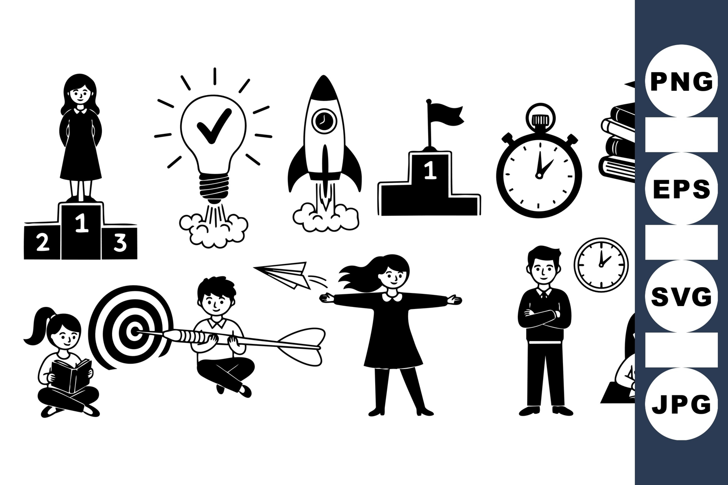 Education Vector Time Management Clipart Teamwork Icon Collection Student Learning Graphics Business Achievement Icons Rocket Launch Clipart Success And Motivation Goal Ting Illustrations Office And Leadership Productivity And Planning