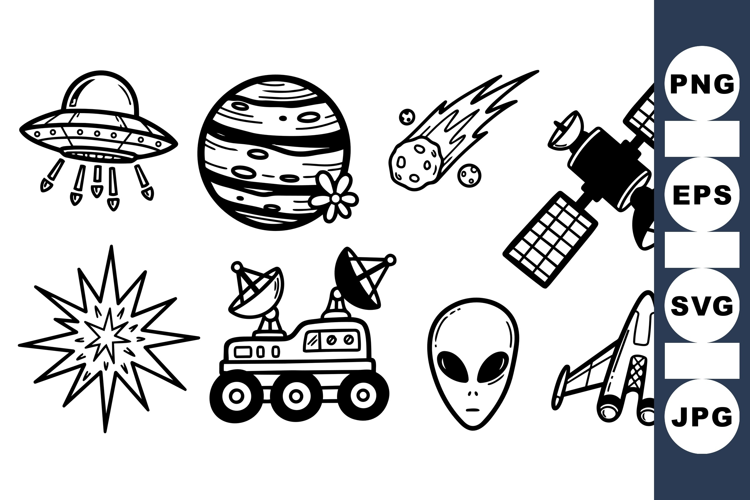 Cosmic Space Planet Vector Outer Space Design Hand Drawn Spaceship Science Fiction Art Space Exploration Clipart Alien Ufo Illustration Space Rover Graphics Comet And Asteroid Satellite Clipart Pack