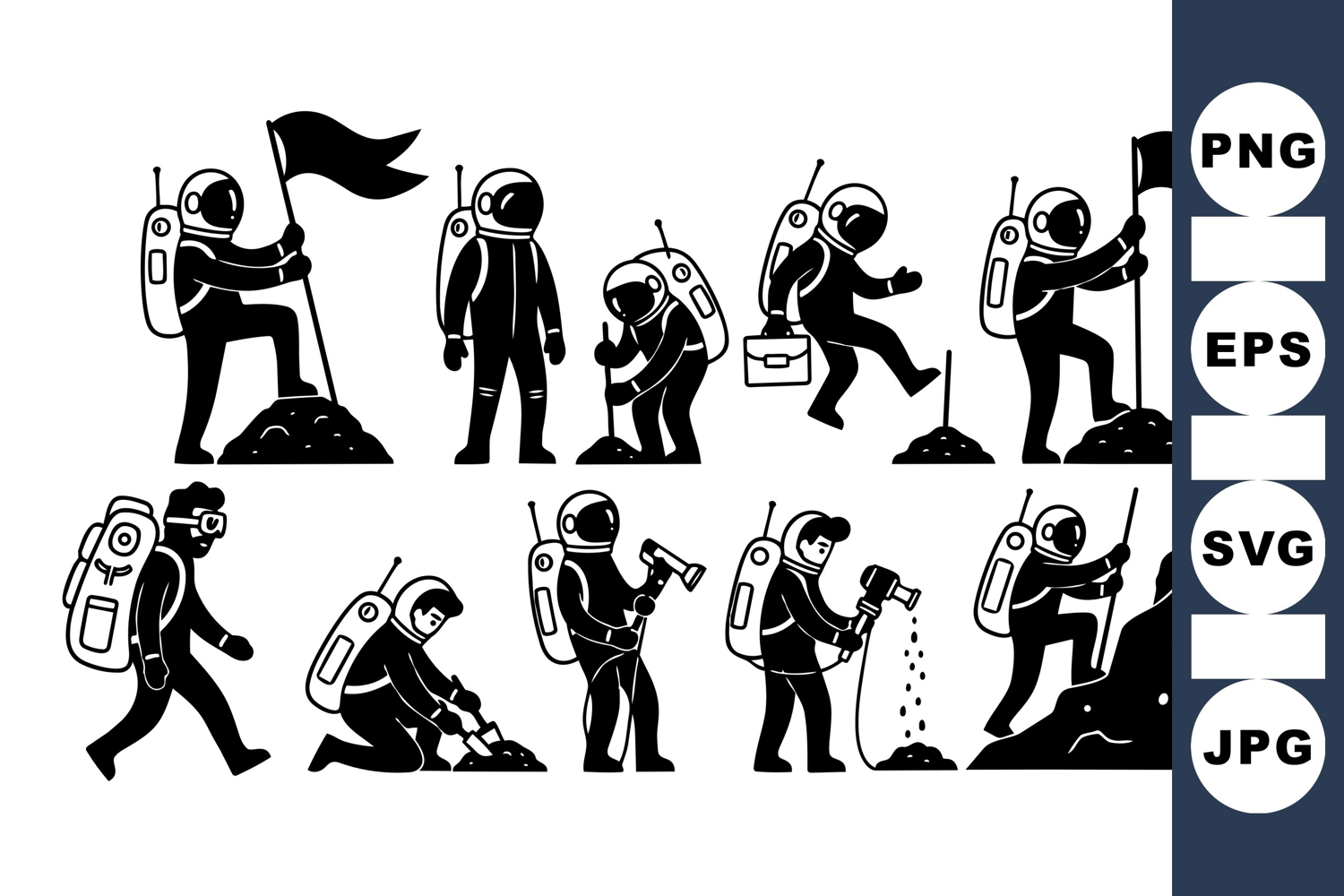 Astronaut Vector Silhouette Space Futuristic Space Space Suit Illustration Moon Landing Graphics Space Explorer Clipart Space Mission Design Cosmic Adventure Kit Lunar Surface Spacewalk Vector Pack