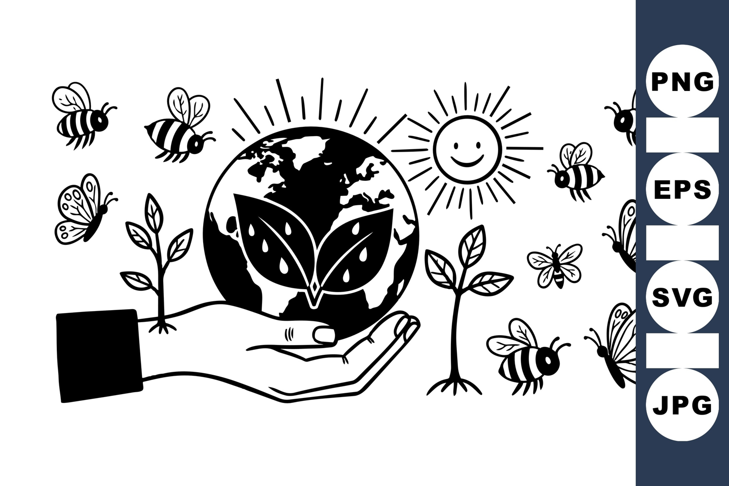 Hand Drawn Clipart Earth Day Graphics Craft Printable Spring Garden Illustrations Black White Drawings Pollinator Insect Art Eco Nature Design Environmental Vector Sustainable Svg Pack Organic Botanical Kit