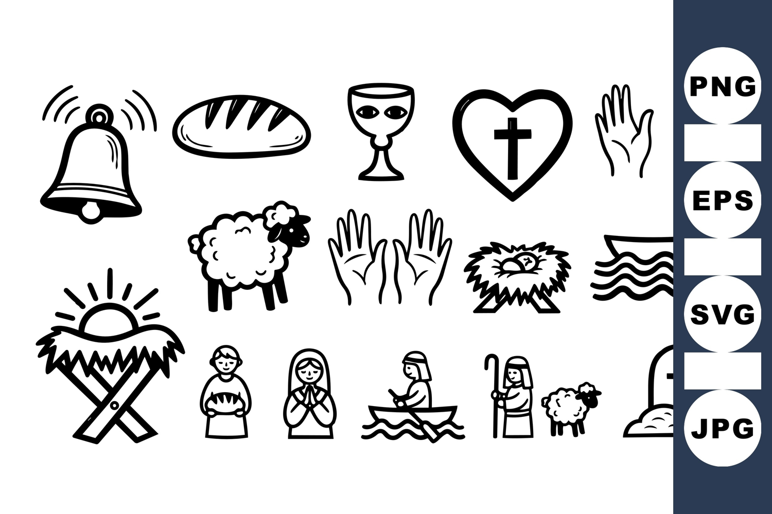 Religious Svg Easter Vector Nativity Scene Holy Communion Clipart Christian Faith Graphics Christian Holiday Icons Baptism Graphic Kit Prayer Hands Images Church Celebration Icons Easter Spring Illustrations
