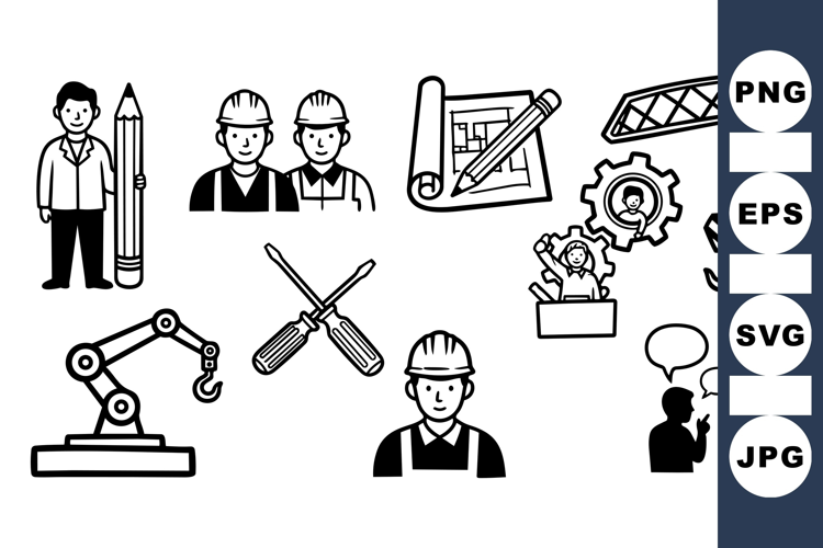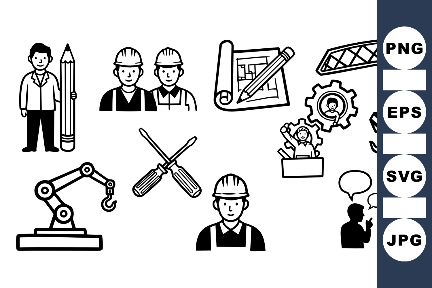 Technical Drawing Construction Worker Icon Construction Site Graphics Manual Tool Illustrations Building Project Icons Mechanical Parts Collection Engineering Tools Industrial Machinery Pack Engineering Blueprint Pack Teamwork Communication Icons