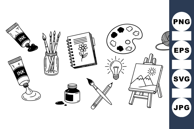 Hand Drawn Art Supplies Vector Clipart