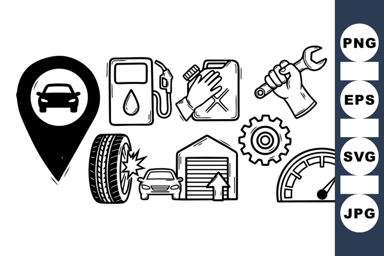 Auto Service Fuel Pump Clipart Mechanic Tool Graphics Car Repair Icons Car Maintenance Kit Vehicle Speedometer Vector Garage Door Illustration Tire Damage Icons Wrench Hand Symbol Car Location Marker
