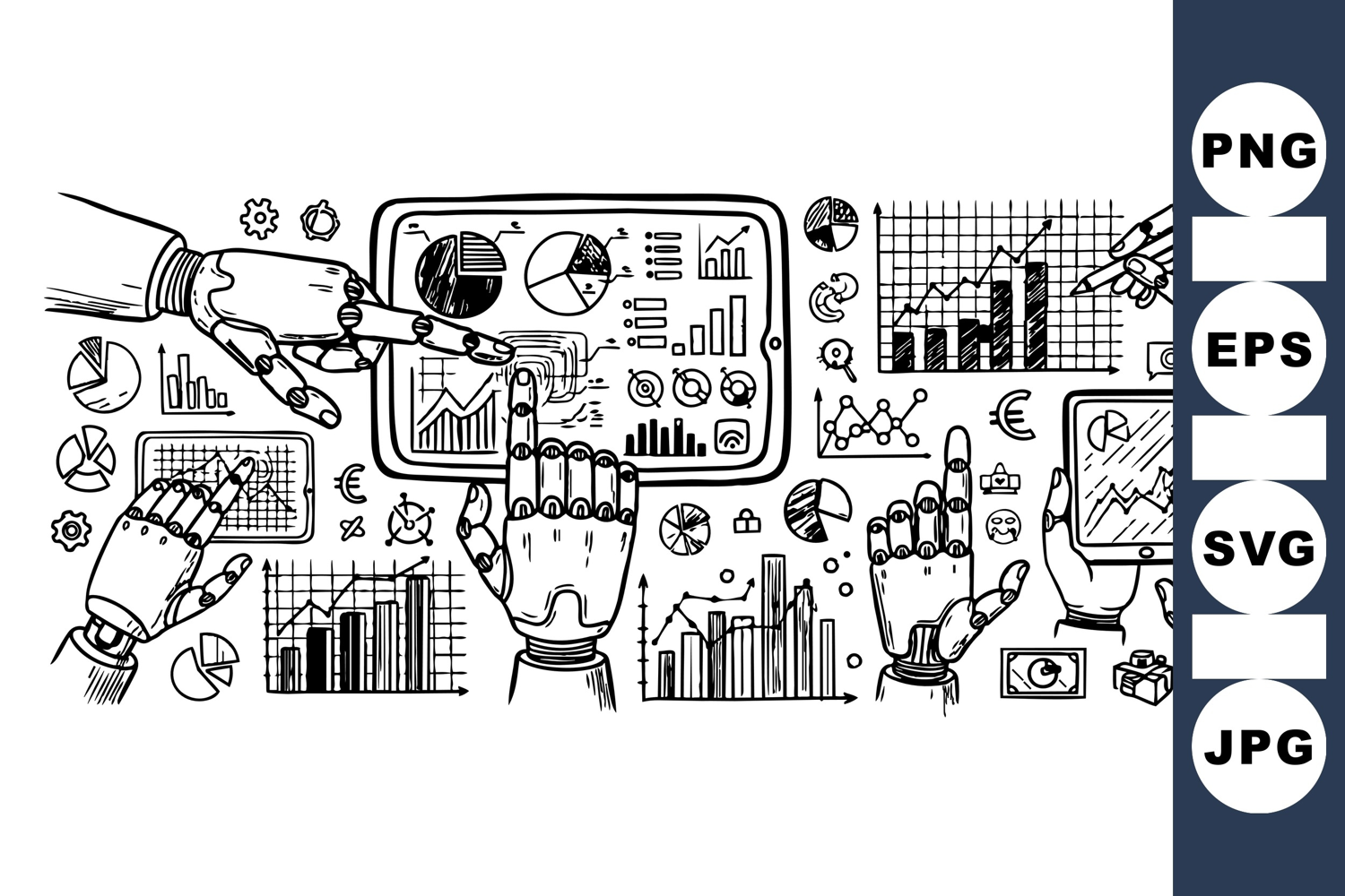 Futuristic Tech Robotic Hand Robot Data Clipart Technology Hand Drawing Machine Learning Graphic Business Analytics Art Digital Interface Illustration Data Visualization Design Financial Graph Clipart Tech Gadget Illustration