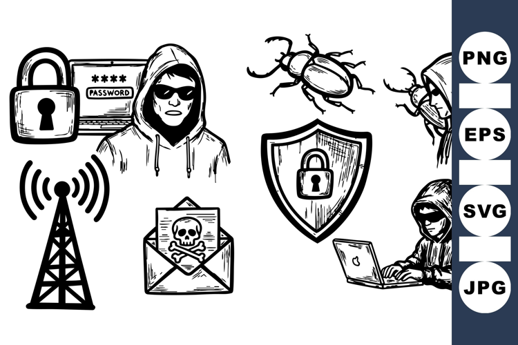 Similar Design Products to Hand Drawn Cybersecurity Hacker Vector Clipart